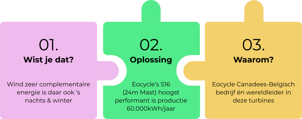 Naast zo veel mogelijk ZON leggen, is Wind-energie essentieel om naar meer decentralisatie én hernieuwbare energie te gaan, idealiter mét batterij erbij!